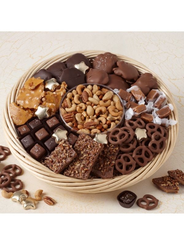 They won’t soon forget this stunner packed full with our very best products made fresh in our candy kitchens! Our Favorite Candy Tray is just that–a collection of our favorite things. Perfectly sharable! Treats come in a variety of milk and dark chocolates. Inside you’ll find: