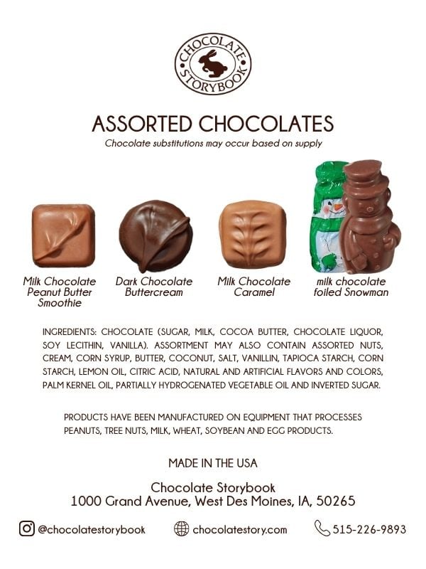 The Holiday Chocolate Assortment Gift Box is perfect as a stocking stuffer or just a cute little gift for anyone on your list. They’re filled with a milk chocolate caramel, milk chocolate peanut butter smoothie, dark chocolate buttercream and a solid milk chocolate snowman wrapped in foil. It’s elegantly packaged in a red or green box and secured with a stretch-band bow. Box size: 3″ x 3″ x 1.25″